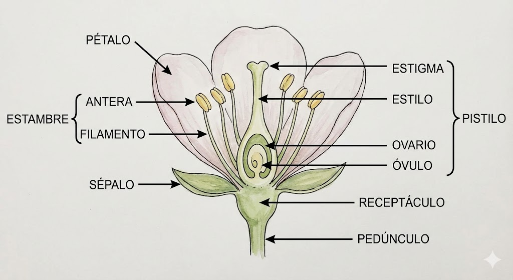 Dibujo de una flor con sus partes para poder hacer la disección de una flor