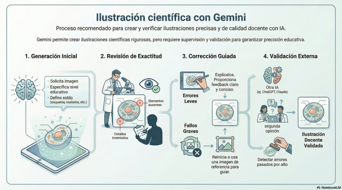 La integración de Nano Banana Pro en Gemini supone el primer avance real para obtener ilustraciones científicas con el rigor que exige la docencia. No obstante, la herramienta dista mucho de ser autónoma; los errores siguen siendo habituales, lo que impide dar por válido cualquier resultado sin un examen previo.
