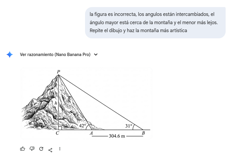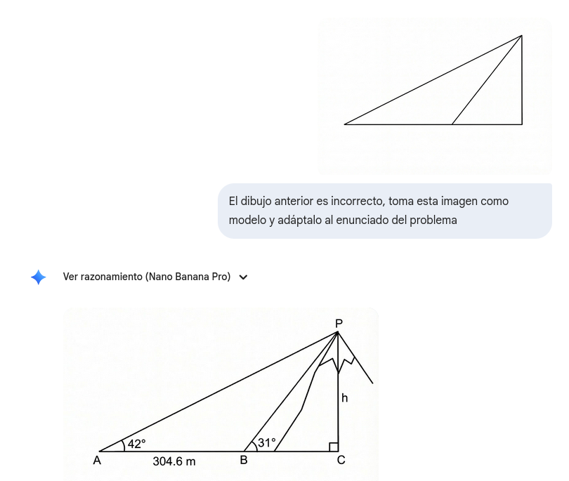 Gemini no solo puede hacer imágenes anatómicas o morfológicas, sino que también puede interpretar geométricamente enunciados típicos de problemas. Como pasaba con los dibujos anteriores, muy posiblemente debamos guiar a la IA para que los haga correctamente.