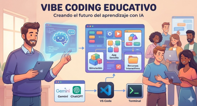 En este año 2025 ha empezado a consolidarse un enfoque de trabajo que muchos docentes ya practican de manera intuitiva y que recibe un nombre específico: vibe coding educativo. Este concepto no se refiere a una tecnología concreta ni a un lenguaje de programación determinado, sino a una forma de crear recursos digitales y aplicaciones educativas apoyándose en asistentes de inteligencia artificial, priorizando la intención pedagógica, la rapidez de iteración y la coherencia funcional por encima del dominio exhaustivo del código.